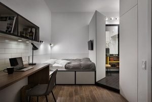 Căn hộ theo phong cách tối giản của sinh viên Ukraine có phòng tắm, chỗ ...